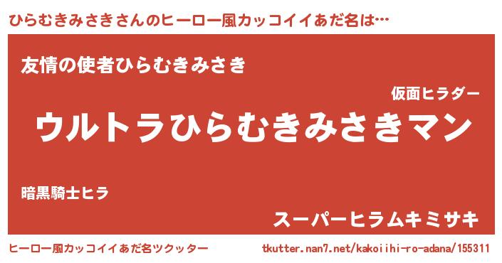 | 男性向けラノベタイトル風あだ名 | 『うちのひらむきみさきが世界を掌握している!』 |
