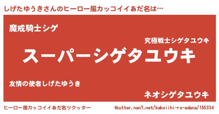 | 男性向けラノベタイトル風あだ名 | 『シゲタユウキアートオンライン』 |