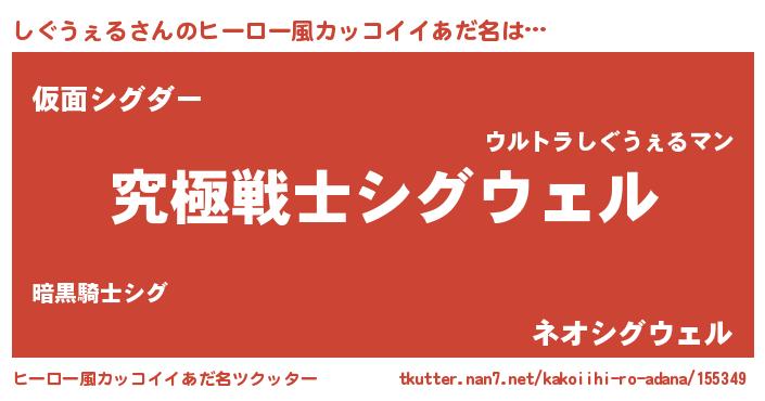 | 意味不明あだ名 | 『自称しぐうぇる』『永久保存しぐうぇる』 |
