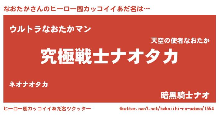 | 男性向けラノベタイトル風あだ名 | 『なおたか~年齢イコール彼女いない歴の魔法使い~』 |