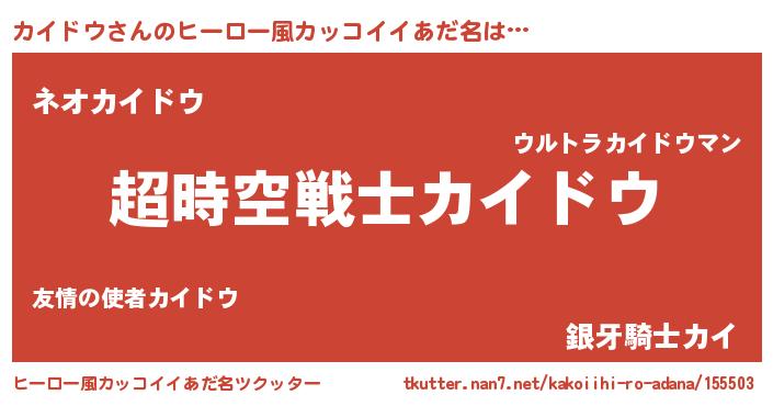 | 意味不明あだ名 | 『自称カイドウ』『永久保存カイドウ』 |