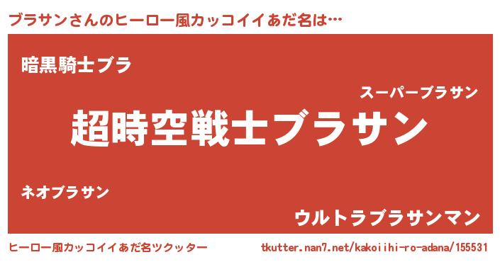 | 女子向けラノベタイトル風あだ名 | 『ブラサンなんてお断りですっ。』 |