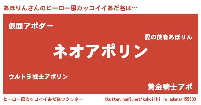 | ヘコむあだ名 | 『あぽりん(遠い目)』『あぽっちょ』 |