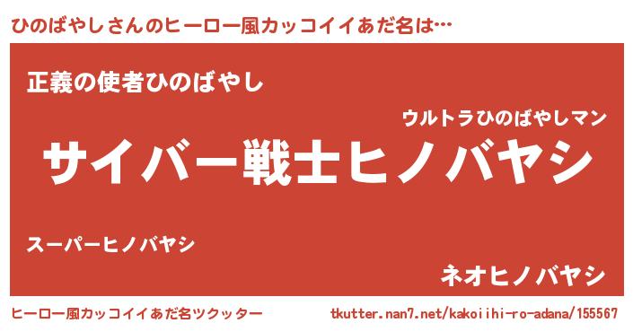 | 男性向けラノベタイトル風あだ名 | 『Re:ひのばやしから始める異世界生活』 |