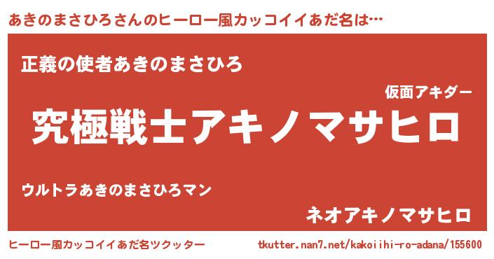 | 男性向けラノベタイトル風あだ名 | 『あきのまさひろに滅ぼされるだけの簡単なお仕事です』 |