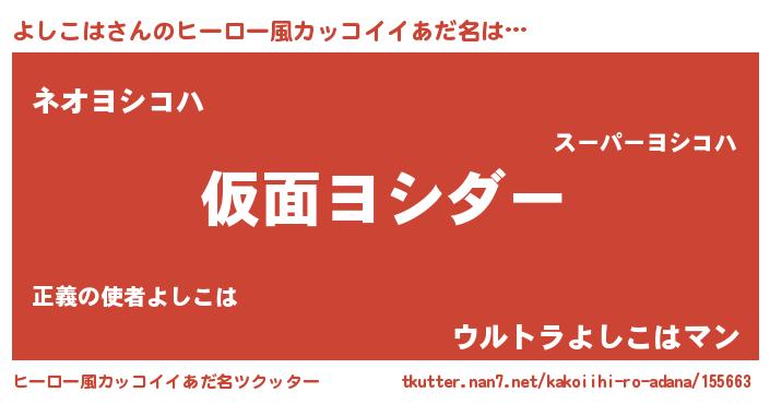 | 男性向けラノベタイトル風あだ名 | 『魔弾の王とよしこは』『よしこはの憂鬱』 |