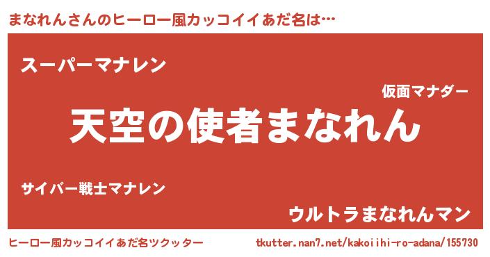 まなれんさんのヒーロー風カッコイイあだ名をツクッター!