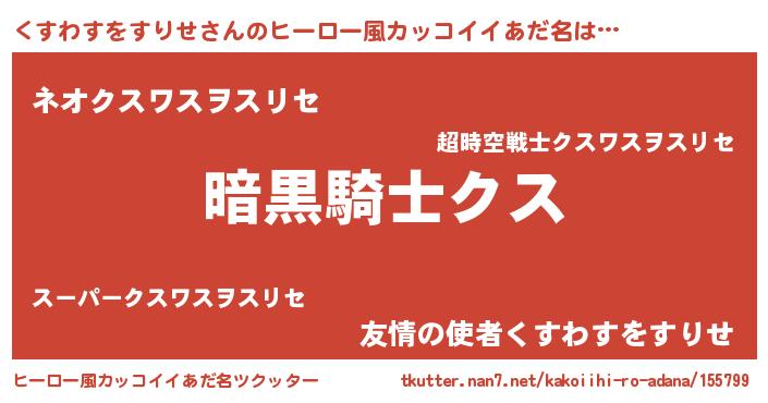 | 胡散臭い通販商品みたいなあだ名 | 『信頼と実績のサプリメント…その名も「くすわすをすりせ」』 |