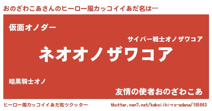 おのざわこあさんのヒーロー風カッコイイあだ名をツクッター!