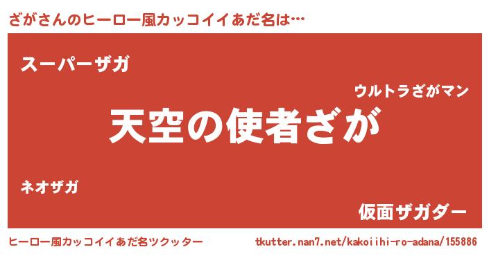 | 男性向けラノベタイトル風あだ名 | 『ノーゲーム・ノーザガ』『ざがの憂鬱』 |