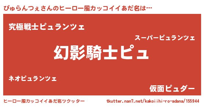 | 女子向けラノベタイトル風あだ名 | 『ぴゅらんつぇの卵を拾いまして』 |