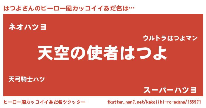 | 男性向けラノベタイトル風あだ名 | 『はつよ~年齢イコール彼女いない歴の魔法使い~』 |