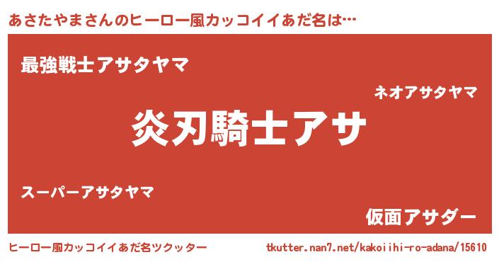 | 男性向けラノベタイトル風あだ名 | 『あさたやまの嫁は女の子じゃないと思った?』 |