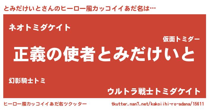 | 男性向けラノベタイトル風あだ名 | 『おまえをオタクにしてやるから、俺をとみだけいとにしてくれ! 』 |