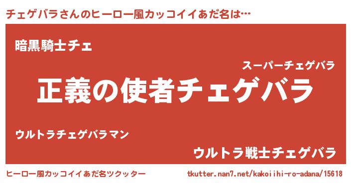| 女子向けラノベタイトル風あだ名 | 『チェゲバラ夫妻のなれそめ』 |