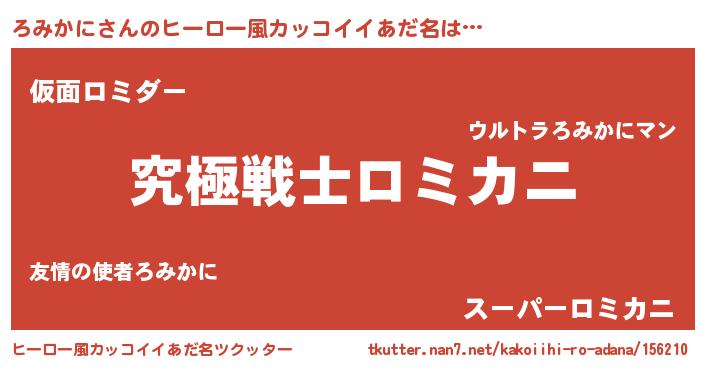 | 男性向けラノベタイトル風あだ名 | 『Re:ろみかにから始める異世界生活』 |
