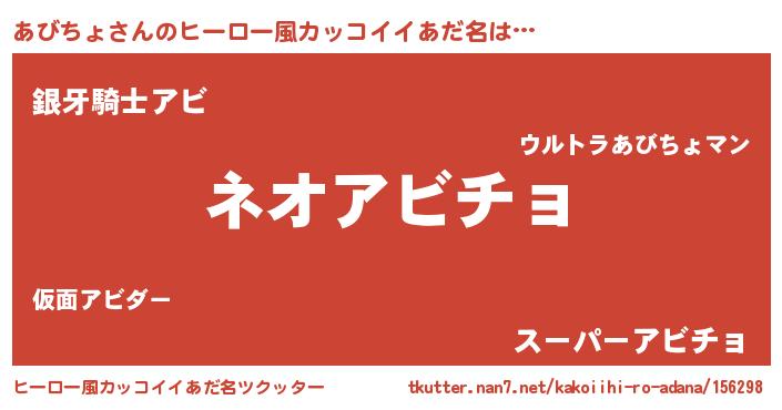 | 男性向けラノベタイトル風あだ名 | 『あびちょという概念が存在しない退屈な世界 』 |