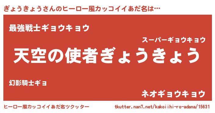 | 男性向けラノベタイトル風あだ名 | 『ぎょうきょう~年齢イコール彼女いない歴の魔法使い~』 |