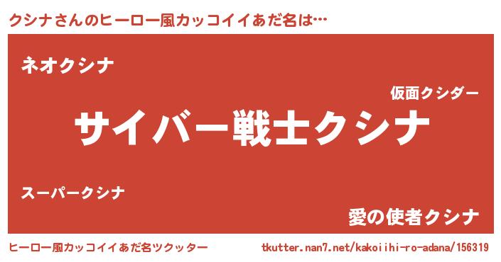 | 男性向けラノベタイトル風あだ名 | 『クシナに滅ぼされるだけの簡単なお仕事です』 |