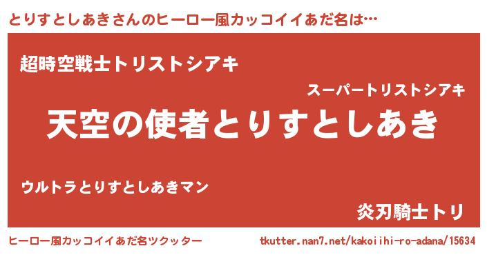 | 伝説のあだ名 | 『救世主となる技術者とりすとしあき』 |