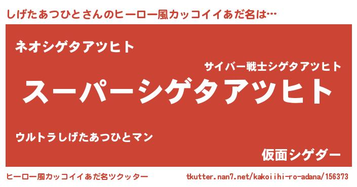 | 男性向けラノベタイトル風あだ名 | 『しげたあつひとの憂鬱』 |