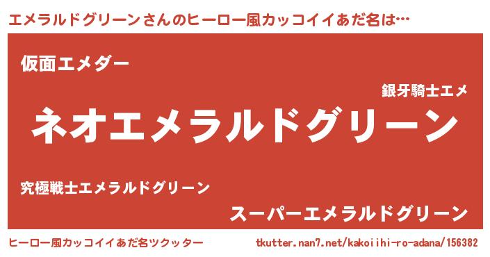 | 胡散臭い通販商品みたいなあだ名 | 『絶対に幸福をもたらす健康食品…その名も「エメラルドグリーン」』 |