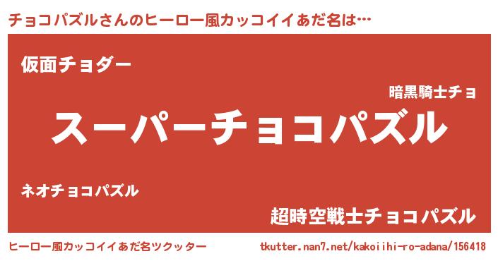 | 男性向けラノベタイトル風あだ名 | 『チョコパズルスレイヤー』 |
