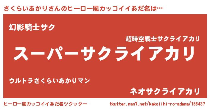| 胡散臭い通販商品みたいなあだ名 | 『億万長者になれるブレスレット…その名も「さくらいあかり」』 |