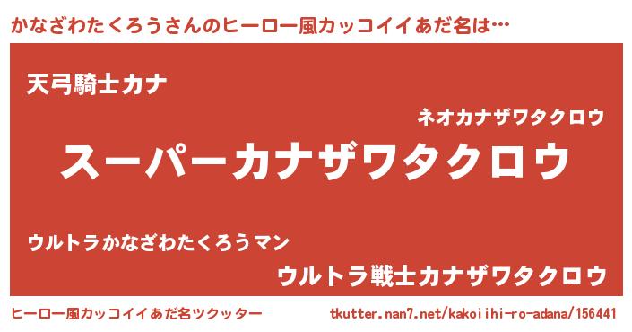| 女子向けラノベタイトル風あだ名 | 『誰かこのかなざわたくろうを説明してください! ~契約から始まるウェディング~』 |
