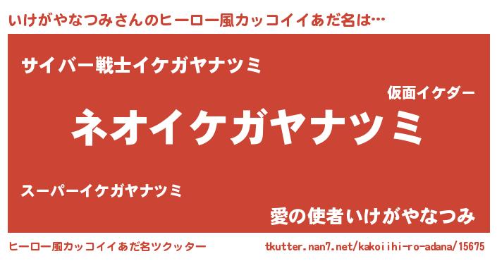 | 胡散臭い通販商品みたいなあだ名 | 『絶対に幸福をもたらす健康食品…その名も「いけがやなつみ」』 |