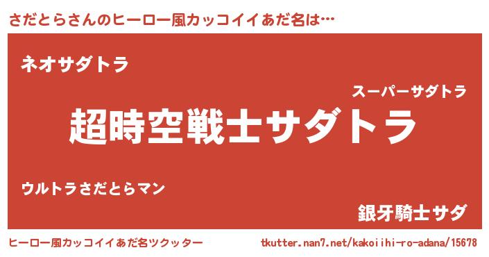 | 男性向けラノベタイトル風あだ名 | 『サダトラスレイヤー』 |