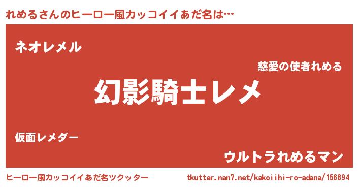 | 女子向けラノベタイトル風あだ名 | 『れめるの卵を拾いまして』 |
