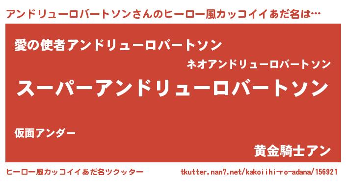 | 男性向けラノベタイトル風あだ名 | 『アンドリューロバートソンの憂鬱』 |