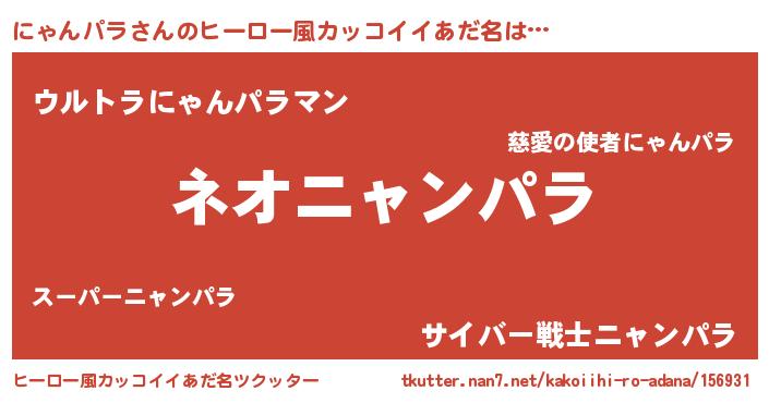 にゃんパラさんのヒーロー風カッコイイあだ名をツクッター!