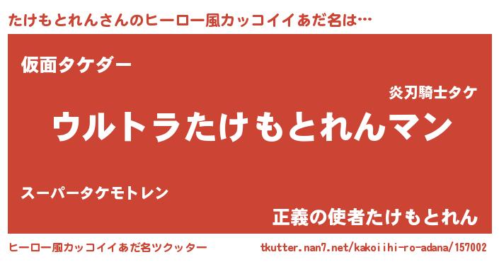| ポケモン風あだ名 | 『メロタッケ』『タケモダネ』 |