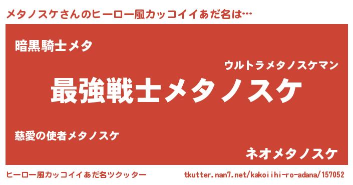 メタノスケさんのヒーロー風カッコイイあだ名をツクッター!