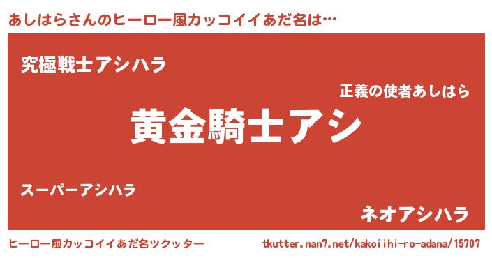 | 胡散臭い通販商品みたいなあだ名 | 『信頼と実績のサプリメント…その名も「あしはら」』 |