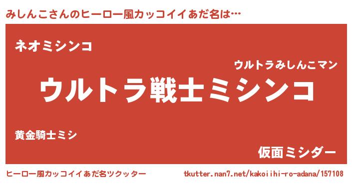 | 男性向けラノベタイトル風あだ名 | 『魔法科高校のみしんこ』 |
