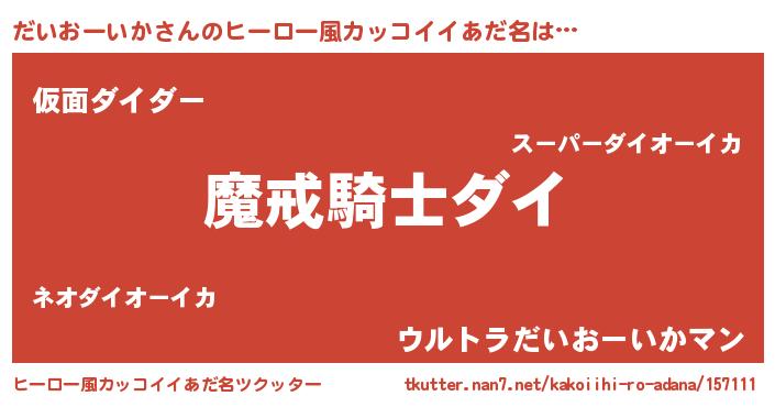 | 男性向けラノベタイトル風あだ名 | 『転生したらだいおーいかだった件』 |