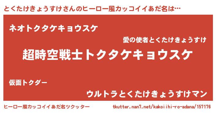 | 男性向けラノベタイトル風あだ名 | 『緋弾のトクタケキョウスケ』 |