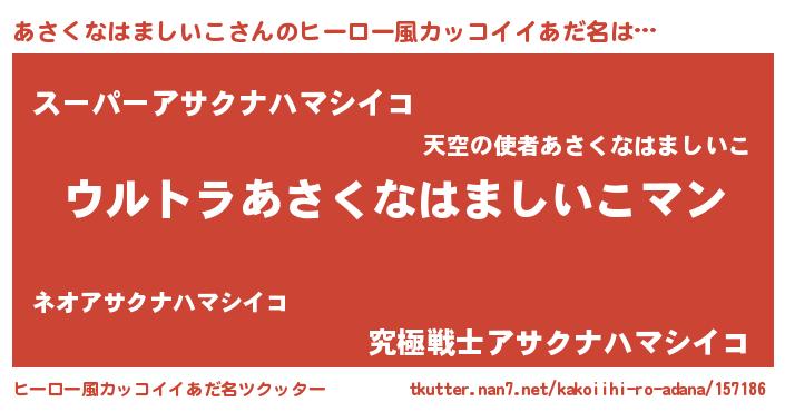 | 欧米人風あだ名 | 『あさくなはましいこ・ステッグマイヤー』 |