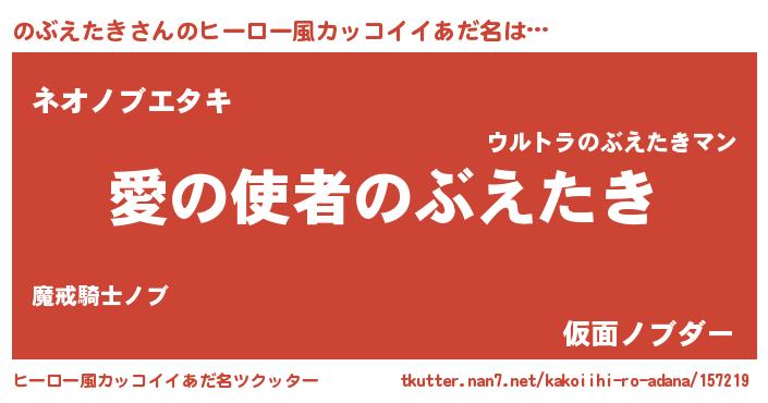 | 男性向けラノベタイトル風あだ名 | 『ノーゲーム・ノーノブエタキ』 |