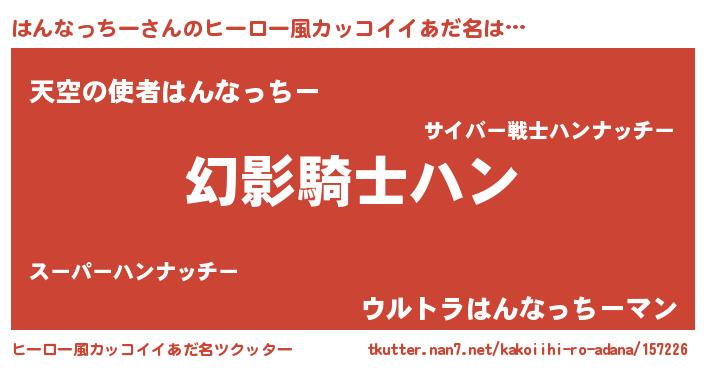 | 男性向けラノベタイトル風あだ名 | 『はんなっちーの嫁は女の子じゃないと思った?』 |
