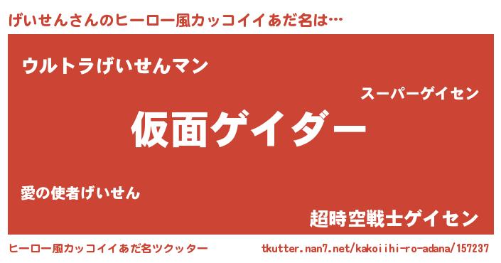 | 男性向けラノベタイトル風あだ名 | 『この素晴らしい世界にげいせんを!』 |