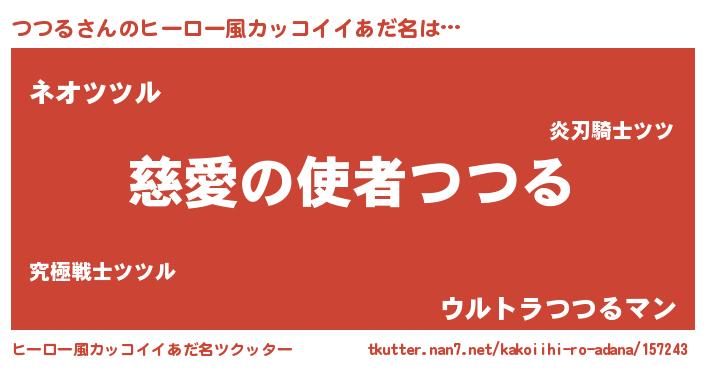 | 男性向けラノベタイトル風あだ名 | 『つつるに滅ぼされるだけの簡単なお仕事です』 |