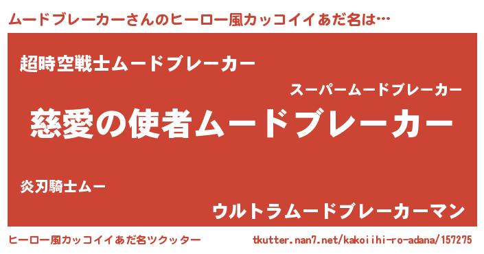 | 男性向けラノベタイトル風あだ名 | 『ノーゲーム・ノームードブレーカー』 |