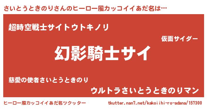| 男性向けラノベタイトル風あだ名 | 『さいとうときのりに滅ぼされるだけの簡単なお仕事です』 |
