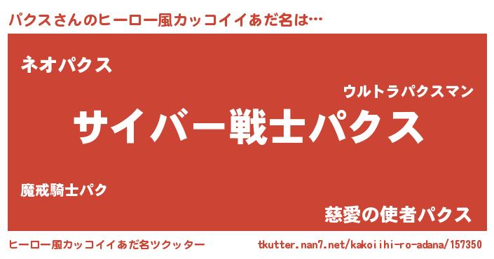 | 意味不明あだ名 | 『自称パクス』『永久保存パクス』 |