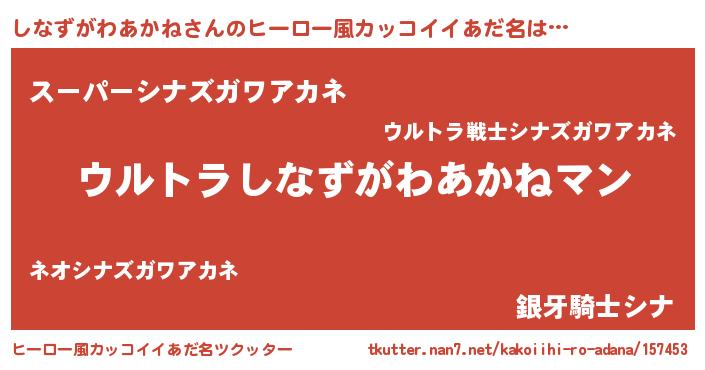 | 欧米人風あだ名 | 『トリンドルしなずがわあかね』 |