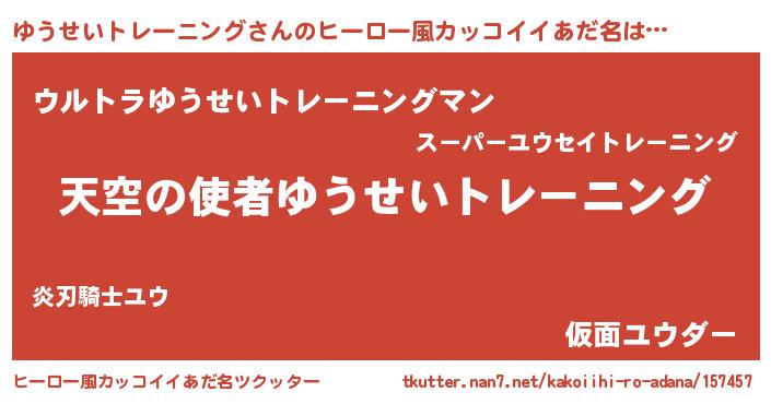 | 男性向けラノベタイトル風あだ名 | 『うちのゆうせいトレーニングが世界を掌握している!』 |